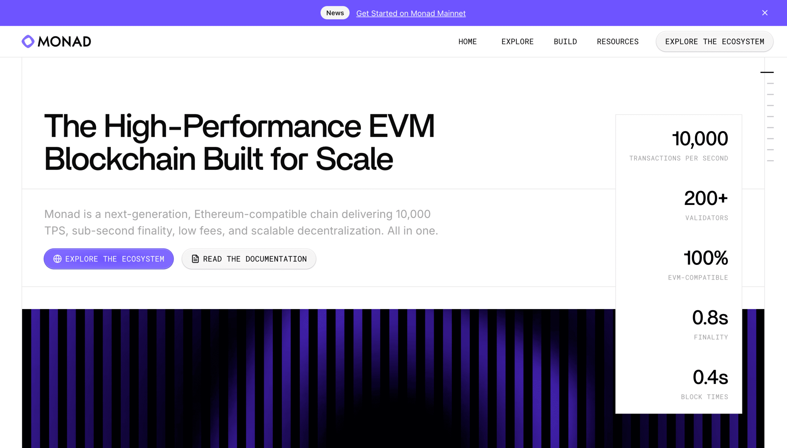 Monadは、EVM(Etherem Virtual Machine)との完全な互換性を維持しながら、並列処理技術を導入することで、1秒間に10,000トランザクション(TPS)という驚異的な処理能力を実現するレイヤー1ブロックチェーンです。