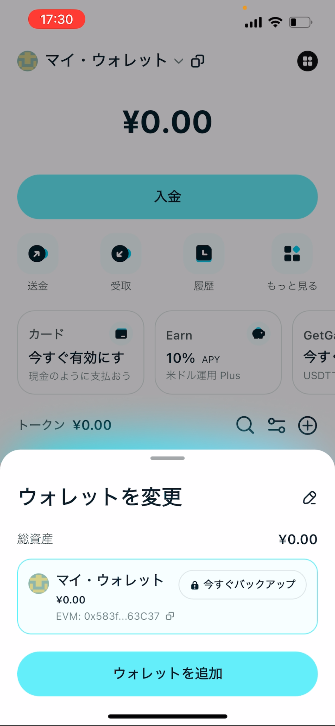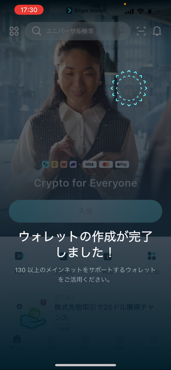 生体認証が使える場合は、一瞬で仮ウォレットの作成が完了します。