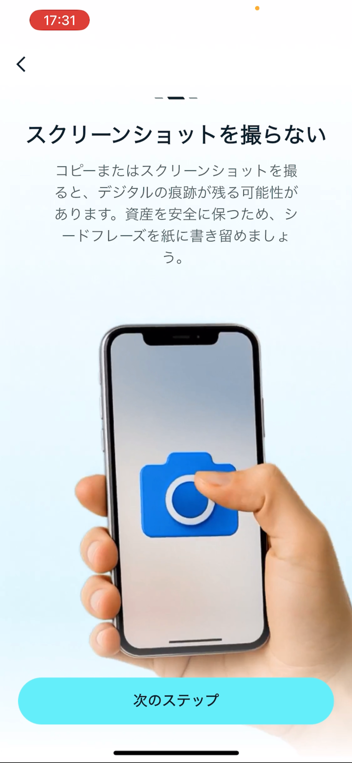 前述の通り、リカバリーフレーズ(シードフレーズ)を紛失すると、スマホが壊れたり機種変更したりした際に、二度と資産を取り出せなくなります。