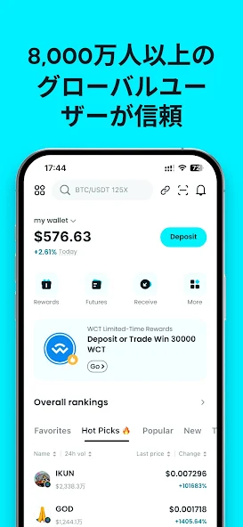 Bitgetは、デリバティブ取引において世界トップ5、現物取引ではトップ10にランクインする、世界有数の仮想通貨取引所です。