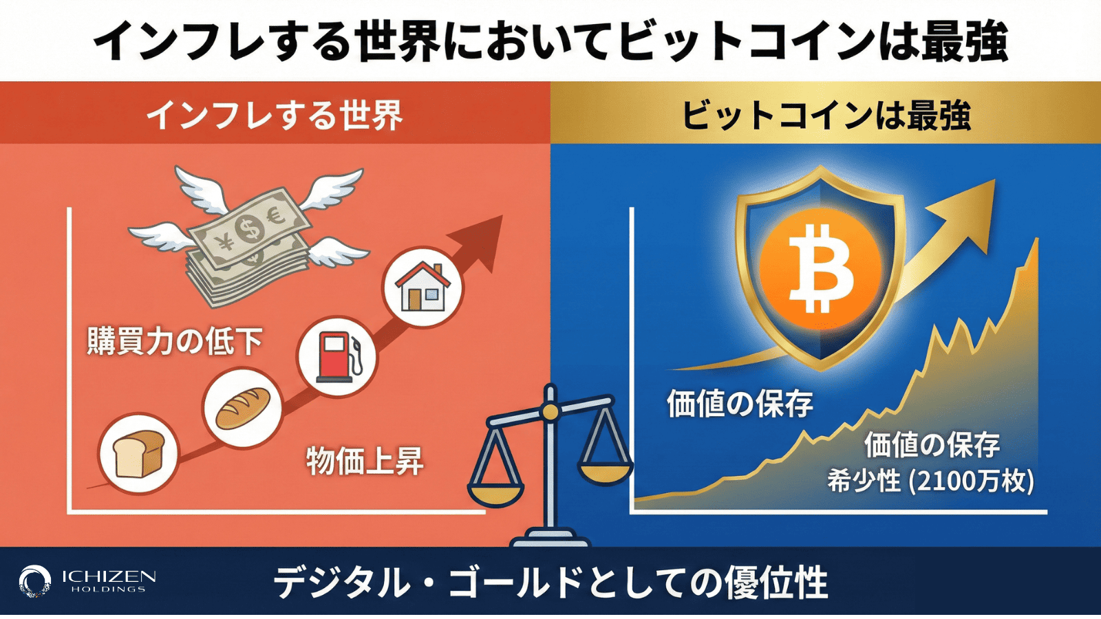 - 経済情勢的メリット:インフレする世界でビットコインは最強