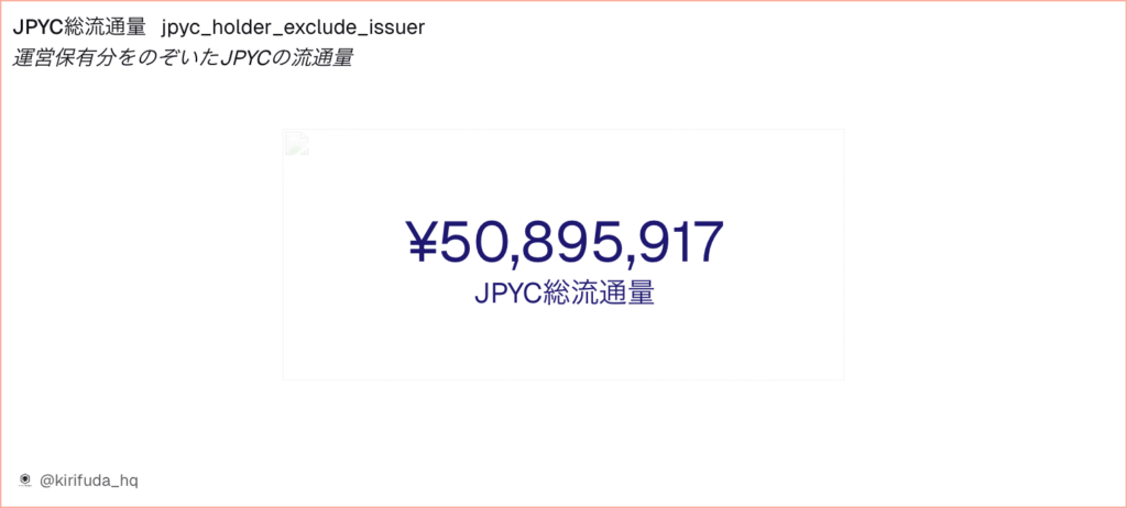 2025年10月時点では、JPYCの総発行額は12億円、流通量は約5,000万円です。