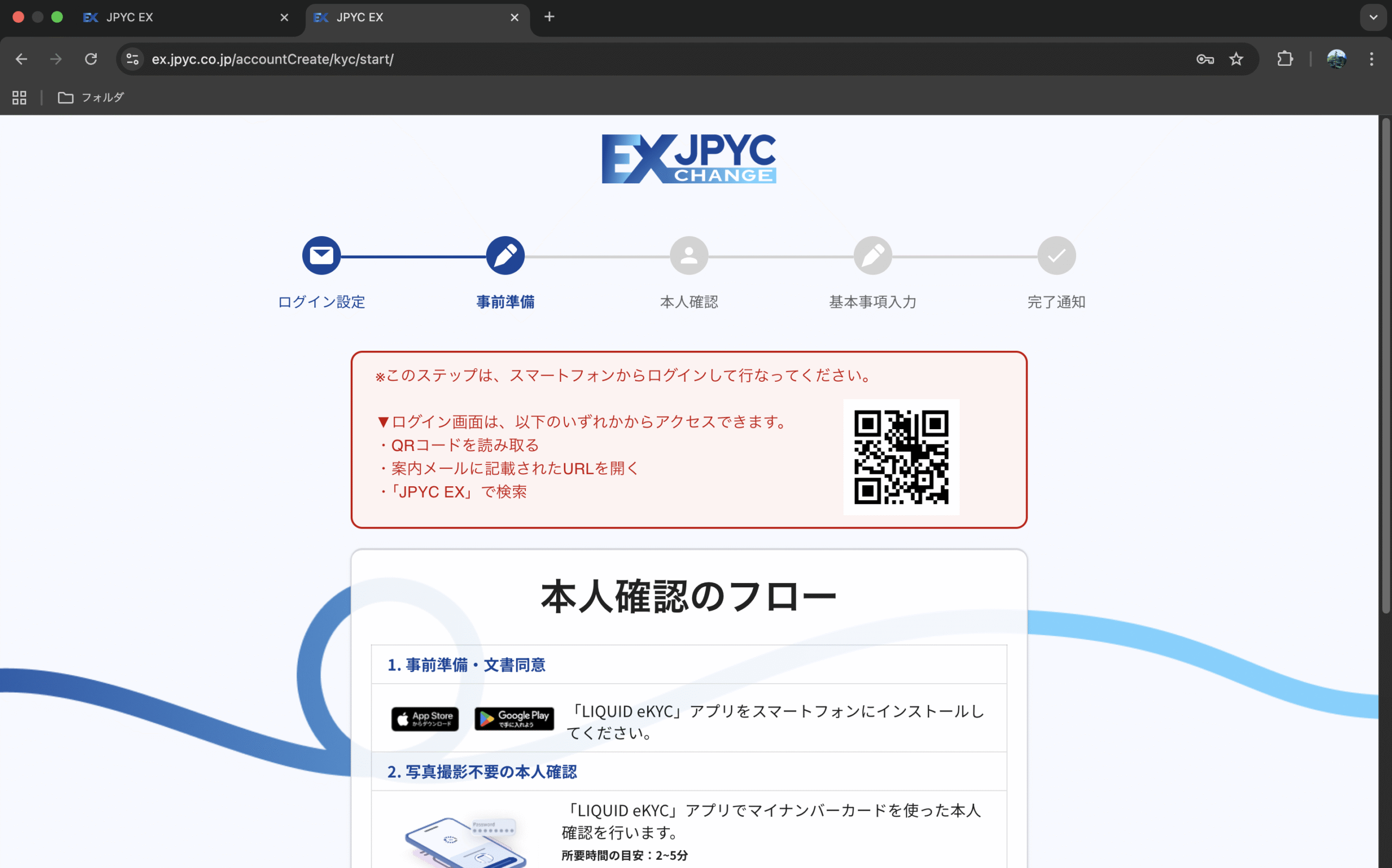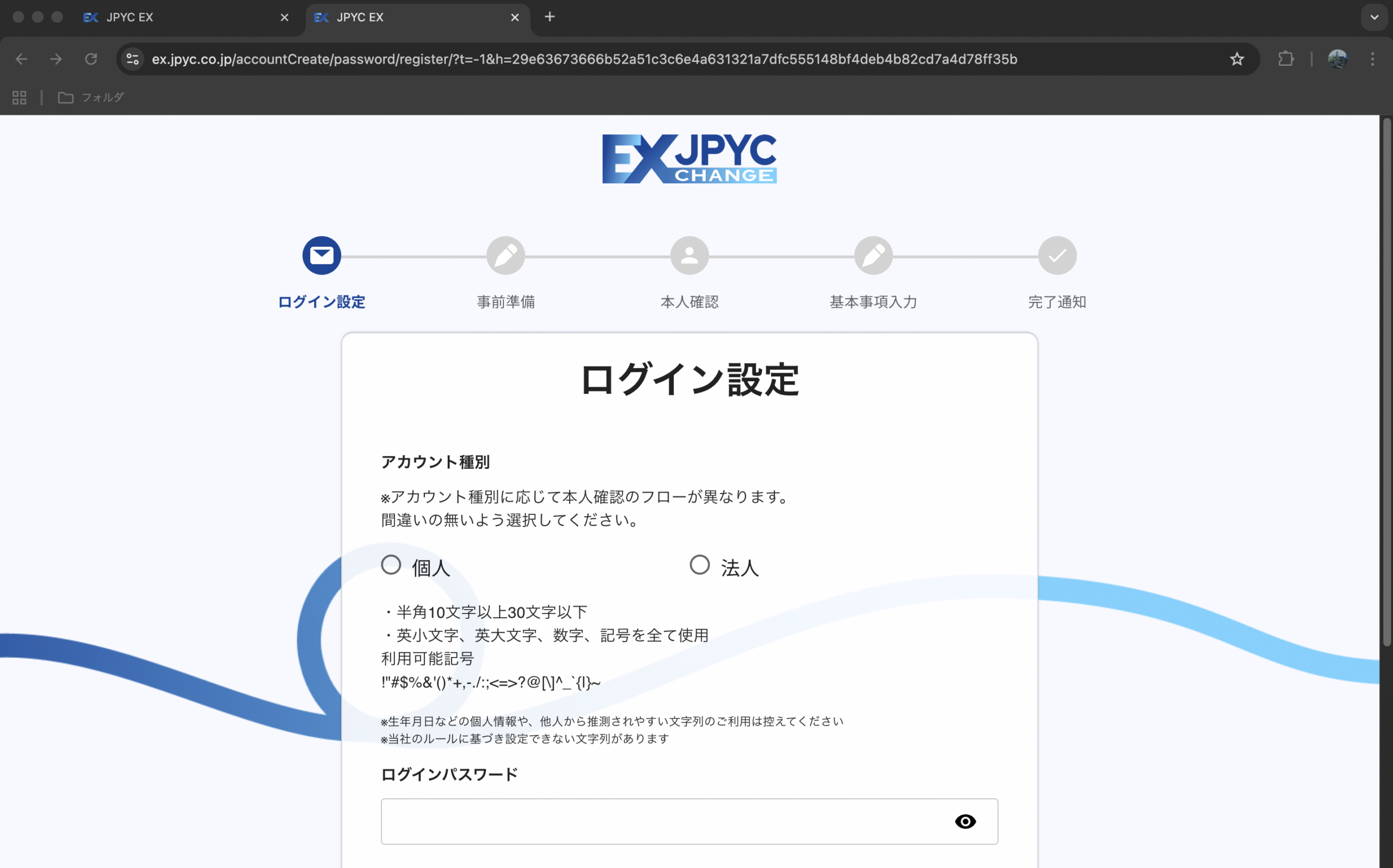 まずは公式サイトからJPYC EXのアカウントを開設しましょう。