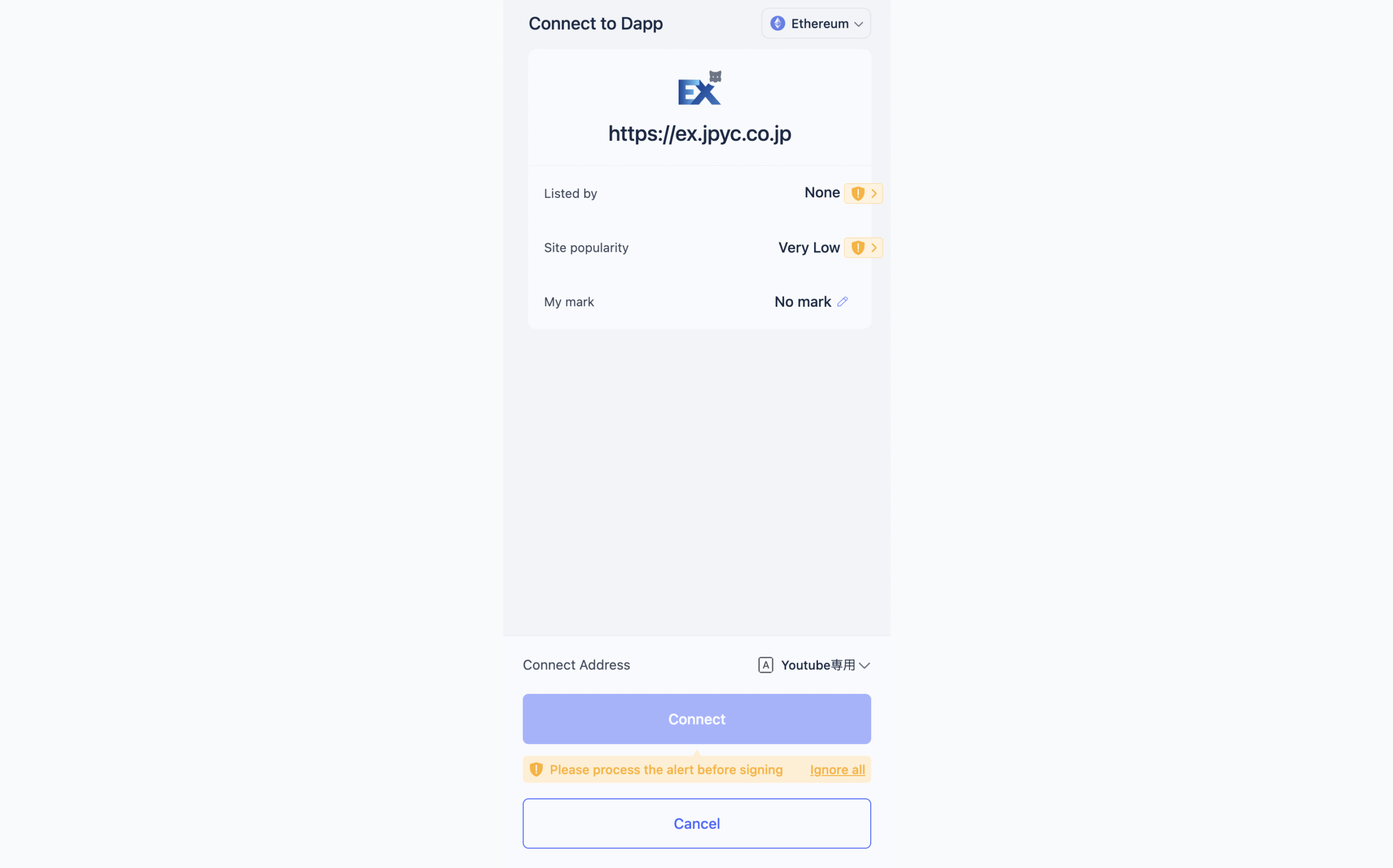 ウォレットの操作もままならないときに、つなげたサイトがスキャム(詐欺)サイトで全ての資産が抜かれる。という事案が起こるのは正直時間の問題だと思っています。