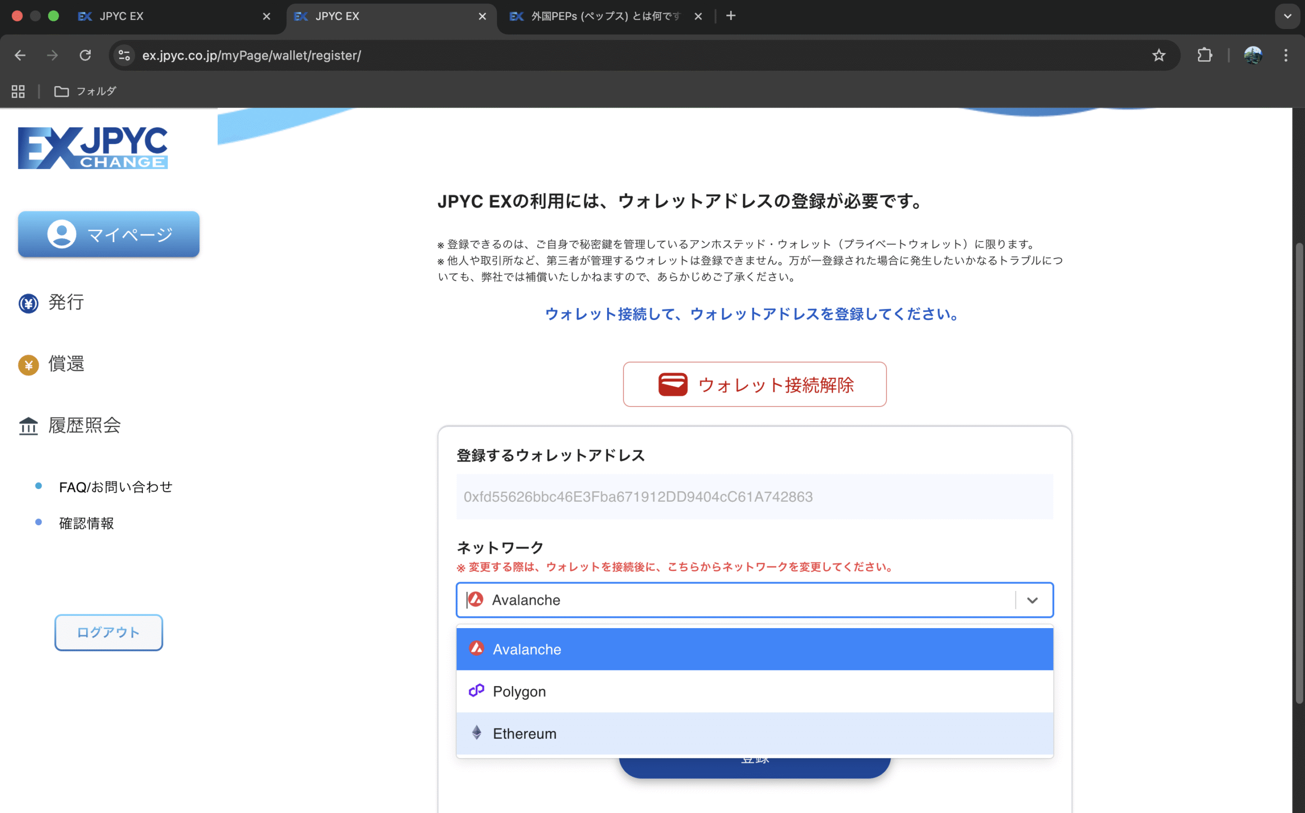 - 2025年10月時点で対応しているチェーンはイーサリアム・ポリゴン・アバランチのみ!ソラナ上のは偽物です。(参考:@gappoi_cryptoさんのツイート)