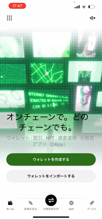 アプリを起動し、「ウォレットを作成する」ボタンをタップします(画像1)。