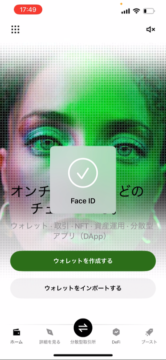 Face IDや指紋認証などの生体認証を設定するだけで、簡単にウォレットが生成されます。(画像3-4)