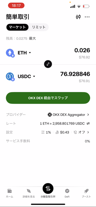 OKX Walletがその通貨を運用する様々なDeFiプロトコルを提案してくれますので、その中で好きなものを選ぶことができます(画像3枚目)。