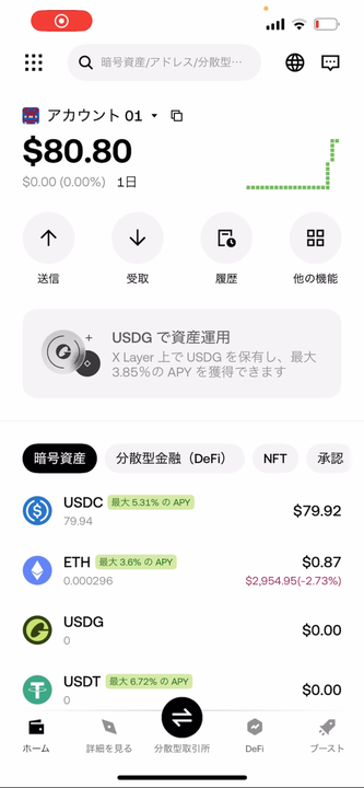 OKX Walletの特筆すべき機能として、特定の暗号資産(例えばUSDCやUSDTなどのステーブルコイン)を運用したい場合に、数あるDeFiプロトコルの中から、安全性が高く、かつ利回りの良いものを自動でリストアップしてくれる機能があります 。