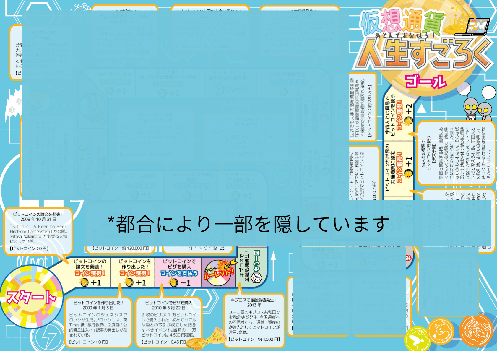- 仮想通貨人生すごろく:クリプトの歴史がマス目に。遊ぶことでオリジナルコインを獲得可能。