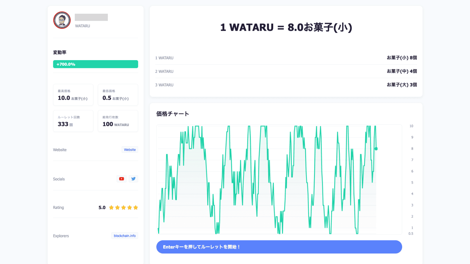 イベント中には、合計333回もルーレットが回り、その価値が大変動することとなりました。